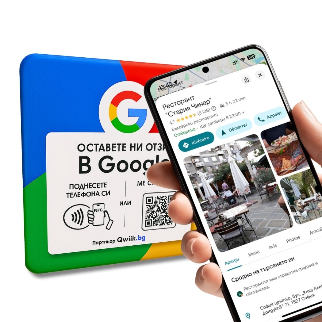 Събирайте Google отзиви лесно: Просто докоснете или сканирайте QR кода за мигновени 5-звездни отзиви.
